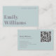 This is an elegant and simple business card in a stylish sage green and grey design with a QR code or company logo. This would suit consultants, creatives or entrepreneurs looking for a chic and understated but professional business card design.