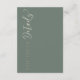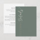 Elevate your stationery with this elegant wedding details card. Its serene sage green background is beautifully complemented by refined script and classic serif typography. The minimalist layout makes key information like reception details, accommodation options and the wedding website easily accessible. Perfect for formal autumn or luxury wedding themes, it harmonises beautifully with matching stationery and gold accents. This insert card helps guests find all the essential details for your celebration.