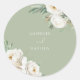 Elegant Sage Leaf & White Floral Wedding Classic Round Sticker