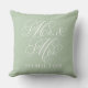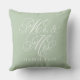 Elegant Sage Mr and Mrs Script Custom Monogram Throw Pillow