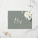 This elegant simple sage RSVP postcard features a watercolor ivory floral design with elegant script font. Personalize with your own details.