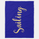 This colour-drenched design features large centred "Sailing" written in festive, elegant warm yellow script text. The background of this modern design is deep rich royal blue.