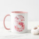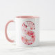 Elegant sakura mug with delicate cherry blossoms and a stylish letter S monogram. Personalize this custom letter S mug with a name, positive traits, and birthdate. A perfect personalized name mug and custom birthday gift, this floral initial mug makes a unique keepsake for everyday coffee or tea.
