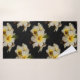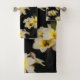 Add a touch of nature to the bathroom with this floral-themed towel set, which features Yellow Mexican Satin Flowers on a black background.