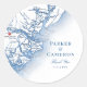 Elegant Savannah Georgia Map Wedding Favour Classic Round Sticker