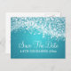 Elegant Save The Date Sparkling Wave Blue Announcement Postcard
