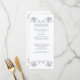 Elegant typography with a vintage flair makes this wedding reception menu rack card stand out. Swirly ornaments frame the text giving it a turn-of-the century flavour. The background colour can be easily customized. Use it as a menu or any printed piece you might need for your wedding, shower or engagement party. Customize it with your own menu or other information on the front and add your name(s) and event date or additional menu information on the back against the same pattern. Available in alternate colours with matching products.