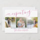 Elegant Script 3 Square Photo Pink Navy Pregnancy Announcement