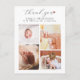 This chic timeless photo thank you postcard is ideal for anyone who wants to thank guests at their baby shower for the gifts, love, and support they have received and to introduce their new member of the family. The modern, elegant design has a minimalist style and features four customizable photos placed in the collage, simple elegant typography for your information, and a chic script for a ´´thank you´´ header. On the reverse, there is a customizable thank-you message with your names. Use the "customize" button to replace photos and edit text.