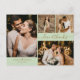 Elegant, Minimalist Hand Lettered Wedding 4 Photo Collage Thank You postcard. Stylish wedding thank you card template featuring four (4) photo on the front and one photo on the back. With the text "Love and thanks" in a swirly hand lettered typography script font with swash-tail font in gold on light sage green, or dusty sage green colour background. Add your custom name and thank you message. If you prefer to handwrite your note, just delete the sample text to make more space. If You need help or matching item, please contact to me!