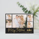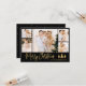Calligraphie moderne noir et or élégant Script 5 Photo Collage Cartes de Noël. Cette carte de voeux festive et minimaliste de cinq (5) jours fériés photo présente un joli collage photo, 3 pin doodle, "Joyeux Noël" texte de bienvenue qui est écrit dans une fantaisie lettre à la main type signature en noir et or. Sur le côté inverse des points enneigés motif avec une belle photo de famille. Jolie carte de voeux pour votre famille et vos amis en hiver.