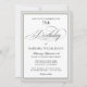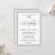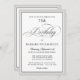 Une belle élégante invitation de fête d'anniversaire surlignée avec des accents de texte de script de calligraphie avec une large bordure gris-argent autour de votre texte. Le style simple et de bon goût fonctionne très bien pour des dîners et fêtes élégants fêtant un anniversaire marquant. L'exemple de texte présenté dans ce modèle d'invitation d'anniversaire montre une célébration de 75ème anniversaire, mais ce texte peut être modifié pour inclure n'importe quel âge. Vous pouvez également omettre entièrement l'âge en supprimant l'âge de l'échantillon indiqué.