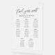 Classic Calligraphy Script Wedding Seating Plan with a translucent white background. Find Your Seat Sign. Personalized Simple Minimalist Seating Chart for 80 guests (8 tables). Just click the customize further link, shown under the text personalization area on the right, and choose your custom colour background. This sign poster template makes it fast and easy to create stunning additions to your wedding decor. Signs can be enlarged, there are many sizes to choose from, as well as options for custom framing and matting.