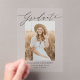 Honour your graduate’s achievement with these modern acrylic graduation announcements featuring a sleek and stylish design. The graduate’s photo takes centre stage, with “Graduate” elegantly overlaying the image in a sophisticated black calligraphy script on a clear acrylic background. Personalize with the graduate’s name, school, and graduation year to create a unique and memorable keepsake. Perfect for high school and college graduates, this minimalist yet elegant announcement is a timeless way to share this special milestone with family and friends.