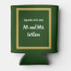 Introducing our exquisite Elegant Script and Gold Frame on Green Can Cooler, perfect for your memorable Wedding Favour Giveaway! This stunning can cooler showcases a harmonious blend of elegant white script typography, set against a lush green background with a touch of sophistication from the gold frame. Its simple yet modern design will effortlessly enhance the aesthetics of any wedding theme.