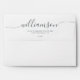 Add a refined, personal touch to your envelopes with this elegant return address design, featuring a flowing modern script surname paired with a light, classic serif font. Centred on the envelope flap, this design is perfect for wedding invitations, formal correspondence, holiday cards, and upscale everyday mail. The minimalist black-and-white style makes it timeless and versatile, while the sweeping calligraphy adds an elevated sense of sophistication. Fully customizable with your name and address.