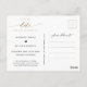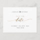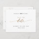Announce your wedding date with this beautiful wedding save the date postcard. Elegant modern hand written Script typography through out. Clean and simple style. Black and white design with touches of gold with phrase Save the Date in Script and block typography in golden hues. Ability to change "Save the" to "Save our" date. Back with area for our full wedding details and names, as well as area for website or personal message (i.e. "Can't wait to see you there!"). Same design in flat card presentation also available.