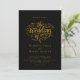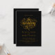 This elegant black-and-gold wedding invitation is perfect for a modern wedding. The simple design features elegant gold calligraphy on a black background. The invitation card includes the wedding details on the back instead of paying for a separate enclosure card.
