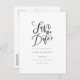 Simple elegant script black and white save the date announcement postcard with a love heart. Add your special announcement details in a classic text. The reverse has additional save the date details, including your wedding website, with your return address and space for your recipient's address. Designed by Thisisnotme©