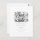 This pretty script black and white save the date announcement postcard features laurel leaves and hearts. Add your special announcement details in a classic text.