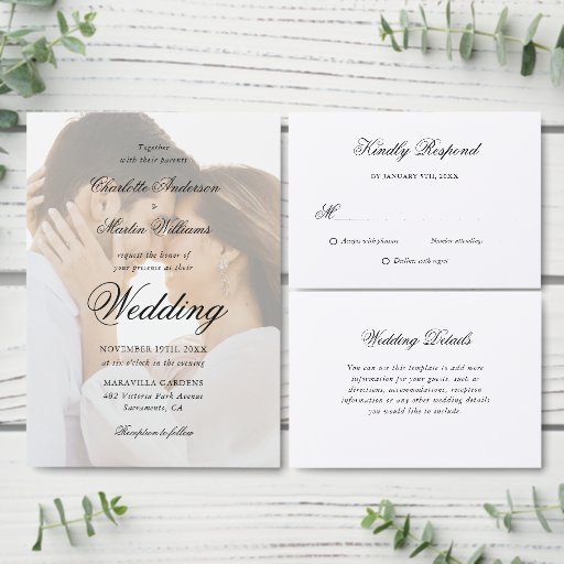 Elegant Script Black and White Wedding RSVP