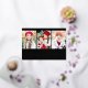 Simple Christmas card featuring three vertical photos and "Merry Christmas" displayed in a festive gold foil calligraphy script on a black background. Personalize the front of the multi-photo Christmas card with your family name and the year. The card reverses to display a modern black and white plaid pattern.