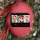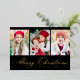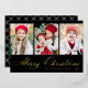 Elegant Script Black Merry Christmas 3 Photo Foil Holiday Card