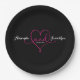 Elegant Script Black with Pink Heart Wedding Paper Plates
