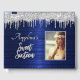 Have guests sign their names with this sweet 16 guest book. The design features an elegant script with blue metallic background with silver glitter drips. Customize with the birthday girl's name to make a keepsake for her wonderful day!