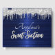 Have guests sign their names with this sweet 16 guest book. The design features an elegant script with blue metallic background with silver glitter drips. Customize with the birthday girl's name to make a keepsake for her wonderful day!