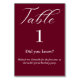 Elegant script Burgundy facts wedding Table Number