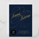 Elegant simple luxurious dark navy blue business corporate greetings holiday card with classy real gold foil Happy Holidays classic calligraphy script. +++++++++++++ Easy to personalize with your company's logo and text on both sides. ++++++++++++++++++ PLEASE NOTE that the background colour is editable. You can change it after selecting CUSTOMIZE option down below the PERSONALIZE IT menu. If you don't feel at ease changing it, please ask Zazzle Live Design Service or the designer for help. The foil colour is also changeable - you can choose gold, silver, or rose gold.