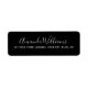 Étiquettes d'adresse de retour noir simples mais élégantes avec votre nom dans une police de script de calligraphie élégante et l'adresse ci-dessous. Vous pouvez modifier la couleur de l'arrière - plan et de la police en une couleur personnalisée à l'aide de l'outil de personnalisation.