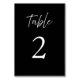 Welcome your guests to their designated tables with our modern and stylish wedding table number cards. The elegant white handwritten script and classic style numbers on a black background is a perfect option for formal weddings. You can also change the colours of the text and background to match your theme. Make your special day even more memorable with these beautiful table number cards. Order yours today and add a touch of elegance to your wedding decor!