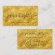Elegant Script Calligraphy Swash Black Gold Texture Business Card. Elegant, stylish professional business card with fancy calligraphy script name with swashes in black on a gold texture background). CHANGES: Change the text font style, colour, size and placement in EDIT. ASSISTANCE: For help with design modification, transferring the design to another product or if you would like coordinating items, contact the designer BEFORE ORDERING via the Zazzle Chat MESSAGE tab or email makeitaboutyoustore@gmail.com.
