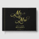 Celebrate your special day with this elegant wedding guestbook. Featuring "Mr and Mrs" in romantic script calligraphy in gold foil on black, this classic design exudes chic and sophistication. Easily personalize the front cover with your names and wedding date, and the spine with your last name, for a beautiful keepsake that you can cherish for years to come.