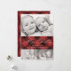 This modern and stylish holiday card is sure to spread cheer this year. Featuring 3 of your photos on the front, with elegant and modern script on a red and black watercolor buffalo check patterned background. Add an additional photo and text to the back.