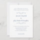 Elegant and simple wedding invitations in beautiful dusty blue and white are classic, formal and timeless. Borderless design allows you to easily choose the paper shape for your invitation to invite guests to your celebration. Two decorative flourishes each containing a single heart delicately envelope the name of the bride and groom. Three lines of text at the top are perfectly configured to list the names of the parents of the bride and may be easily configured to suit your needs. For optimal results skip lines and capitalize as in sample. Other text configurations are available in this invitation suite design.