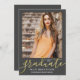 Elegant Script Dark Grey Gold 2-Photo Graduation Announcement