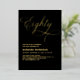 Celebrate a milestone in style with this Elegant Script Eighty Black Gold 80th Birthday Invitation. Featuring luxurious black and gold tones, this sophisticated invitation is designed with elegant script lettering, making it the perfect way to invite guests to a memorable 80th birthday celebration. The gold accents bring a touch of glamour and timeless class to your event.