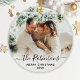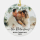 Elegant Script Family Name Photo Merry Christmas Ceramic Ornament