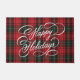 Elegant Script Festive Red Tartan Happy Holidays Doormat