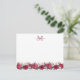 Elegant Script Floral Burgundy Red Monogram Note Card