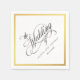 A beautifully elegant wedding napkin featuring calligraphy script text accents with a wide gold border surrounding your text. The simple, tasteful style works well for weddings in all seasons.