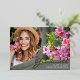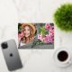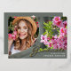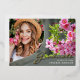 A unique photo graduation announcement card, featuring design elements of elegant handwritten style script with the word "Graduate" in real foil (foil colour options are gold, silver and rose). The graduates photo is enhanced by beautiful pink flowers with a sage green background. The back of the card offers personalized text spaces for information about the graduation and future journey. To see more items like this, visit my store here at "www.Zazzle.com/LakeViewCardCo". Thanks