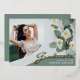 A unique photo graduation announcement card, featuring design elements of elegant handwritten style script with the word "Graduate" in real foil (foil colour options are gold, silver and rose). The graduates photo is enhanced by beautiful white and yellow flowers on a stylish sage green background. The back of the card offers personalized text spaces for information about the graduation and future journey. To see more items like this, visit my store here at "www.Zazzle.com/LakeViewCardCo". Thanks