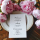 Présentez notre programme de mariage minimaliste élégant qui ajoutera une touche de sophistication à votre journée spéciale. Avec un élégant script noir et une lettrage classique sur un arrière - plan blanc, il est parfait pour les mariages formels. De plus, vous pouvez customiser les couleurs du texte et de l'arrière - plan pour correspondre à votre thème et papier à lettres mariage. Créez le mariage dont vous rêvez et faites une déclaration avec notre design minimaliste élégant. Commandez la vôtre aujourd'hui et faites de votre grand jour encore plus spécial!