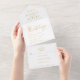 Elegant Script Gold and White Calligraphy Wedding All In One Invitation