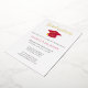 Ce faire-part de graduation comporte un casquette rouge et des feuilles d'or. Tout le texte à l'avant et à l'arrière est modifiable. Ajoutez une photo à l'arrière de la carte pour créer une invitation de graduation vraiment unique.