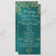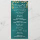 This romantic design features an elegant teal background and border of gold leaves, wedding ceremony details & thank you on the front with wedding party members on the back. Available in several colours for your wedding theme. Available in several colours for your wedding theme. Designed to coordinate with the Elegant Doves, Heart & Gold Leaves Wedding Collection. To change details, click «Personalize». To move the text or change the text size, font, or colour click «Click to customize further»